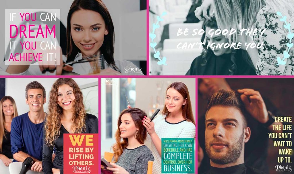 The goal of this project was to have a single item that could be utilized as a marketing piece to those in the health, wellness, and beauty field to summarize what Phenix Salon Suites has to offer. It was important to cover all aspects of the field and reinforce that professionals are already “renting” chairs or spaces within a salon or spa that is owned by someone else, so why build someone else’s dream when they can build their own!
